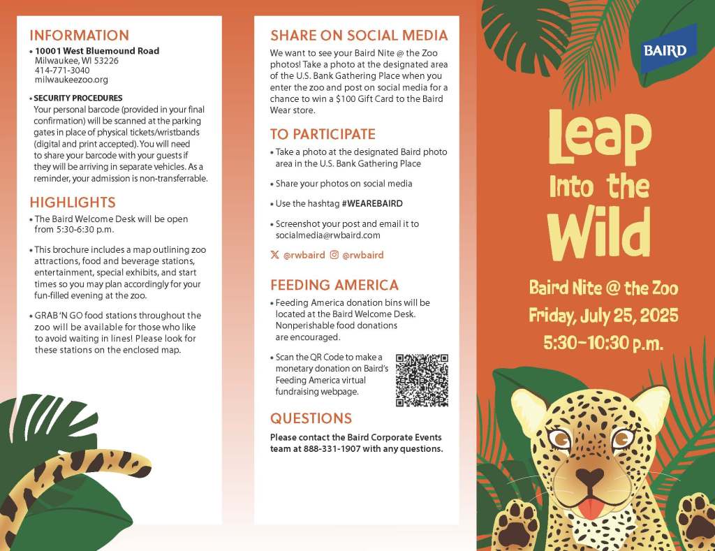 This past year, the Milwaukee Zoo got a new Jaguar named Filly, who became the mascot for 2025’s Baird Nite at the Zoo. The jaguar is hand illustrated, so she could be poseable in different scenarios, like emails, videos, and pamphlets.